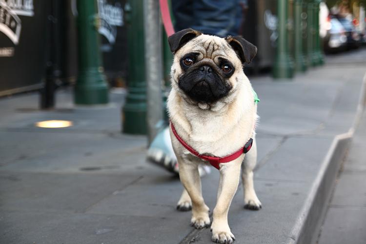 建议铲屎官早晨或者傍晚的时候带巴哥犬出去散散步就好