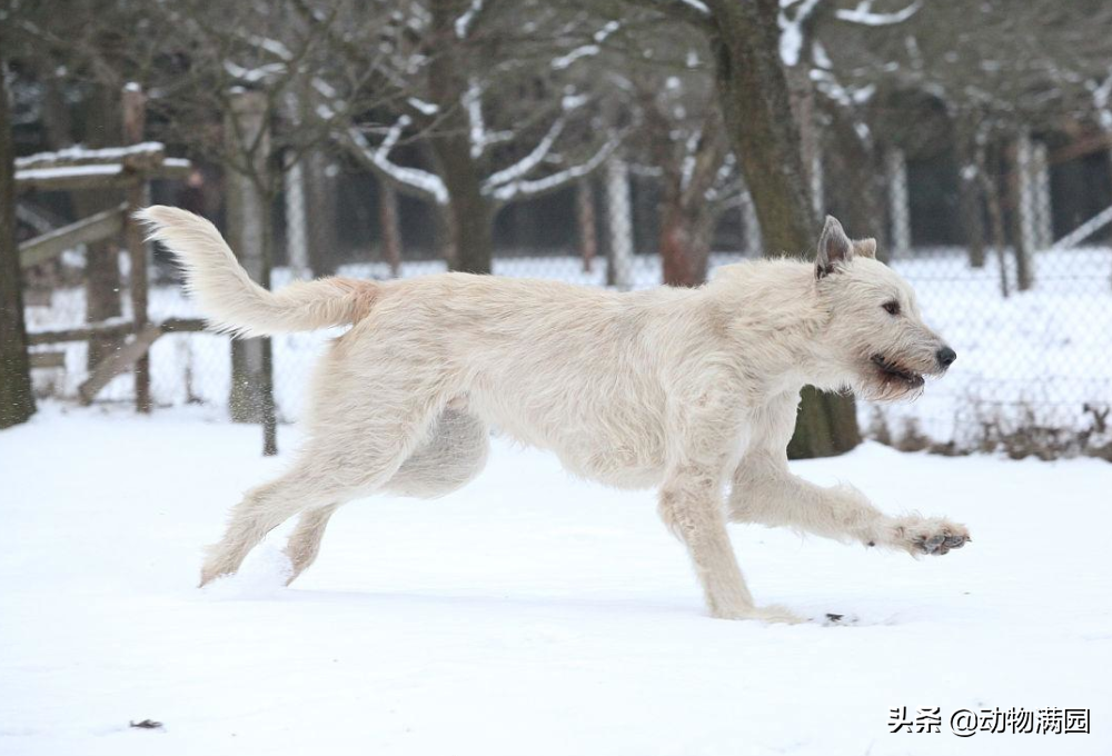 时间: 2023-12-04 18:57:01爱尔兰猎狼犬,原产于爱尔兰,是爱尔兰的国犬。体型巨大,雄性身高75-100厘米,雌性70-80厘米,是世界上最高大的犬。外观普遍与灵缇犬相似,被毛粗硬杂乱,身体结构结实,肌肉十分发达,显示出力量、活跃、勇气和匀称性。最初这种犬被凯尔特人用于捕狼,后来被罗马人运送到爱尔兰,在19世纪下半叶,通过与古代捕狼犬有血统关系的现代犬进行培育后,人们成功地育成了该品种。