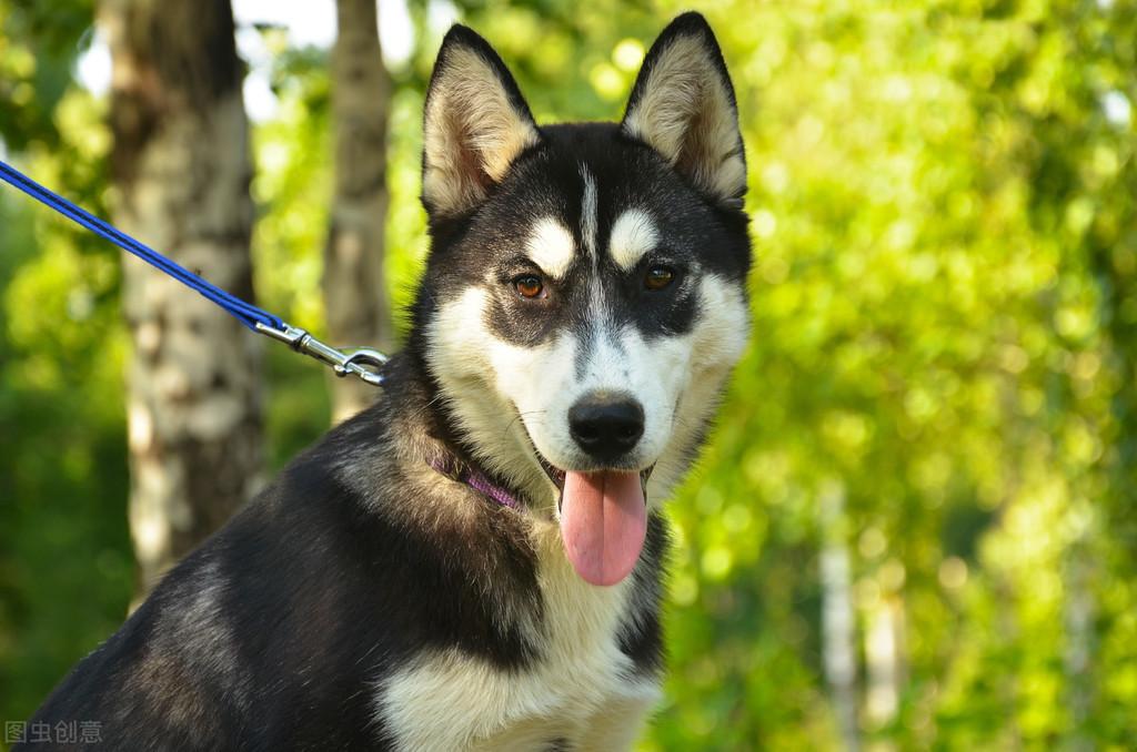 哈士奇的额头和眉间颜色分布是两点眉形,双线型和十字型,一般统称为“三火脸”;
