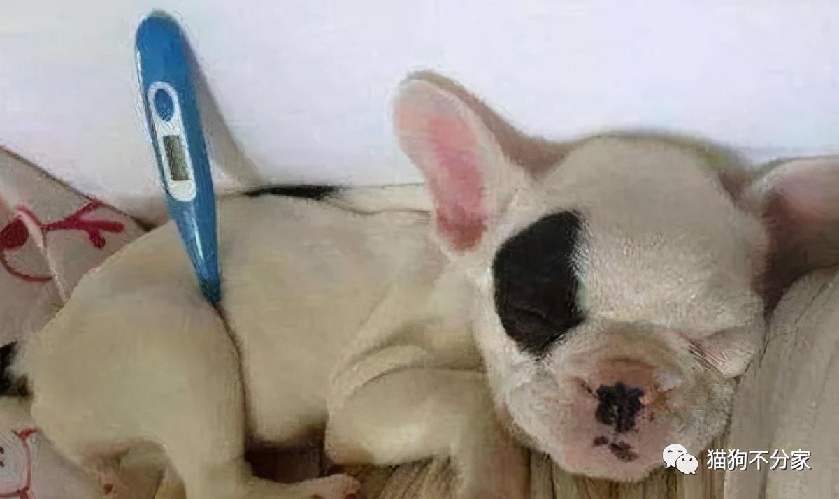 测量后腿根部的温度(电子体温计):狗狗的腿抬高再夹上表,让后腿和肚皮紧紧的夹住体温计即可;电子体温计在测量结束后通常会自动报警;电子体温计容易受到干扰,建议测量三次取平均值即可。