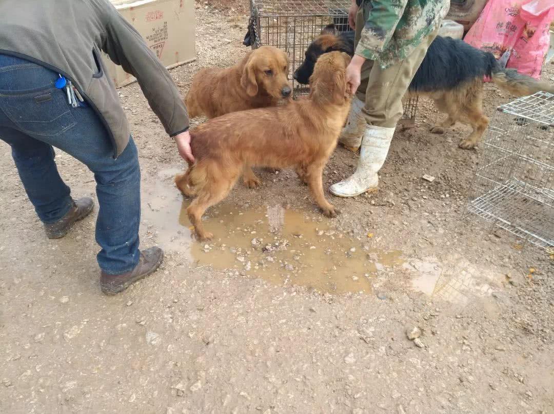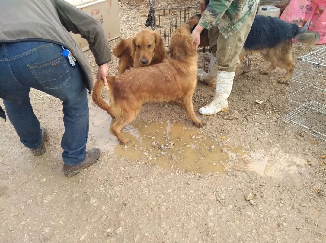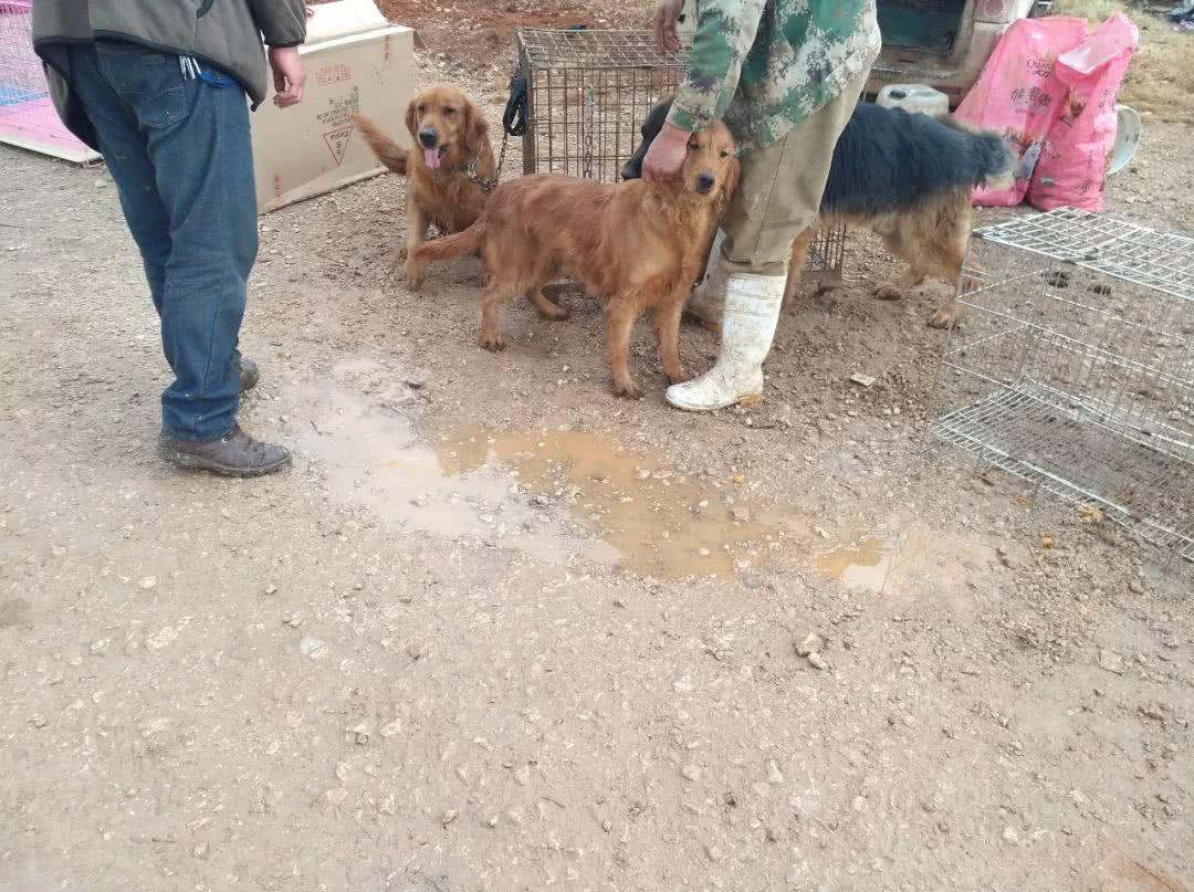 图中的饲主正牵着两只品相非常不错的成年金毛寻回犬,跟一旁的商贩聊着什么。从他们的交流当中,笔者了解到,这位饲主带着自己的两只金毛寻回犬来狗市当中进行配种,而另外一个饲养场的商贩表示非常喜欢这两只大狗,希望它们可以帮自己配种,以培育出新一批的金毛寻回犬幼犬。在经过一番协商之后,饲主同意以400元一次的价格帮助饲养场主进行配种。