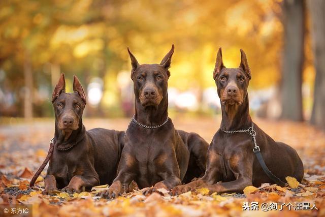 杜宾犬原产德国,胆大,敏感、坚决、果断、好撕咬。杜宾犬是天生的警卫犬,聪明,力强。家庭饲养这种犬的并不常见。