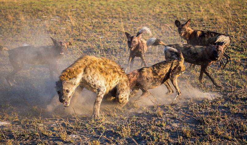 所有这一切只是为了说明,一群鬣狗会战胜一群非洲野狗。这方面有广泛的证据,但自然就是自然,如果条件和数量对它们有利,非洲野狗可能是一个凶猛的对手。因此,在某些情况下,非洲野狗是可以打败鬣狗的。我个人认为,只有野狗的数量远远超过鬣狗的数量,它们才能获胜。然而,在一场公平的殊死战斗中,即使野狗数量多于鬣狗,甚至有一点优势,鬣狗仍旧是胜利的一方!
