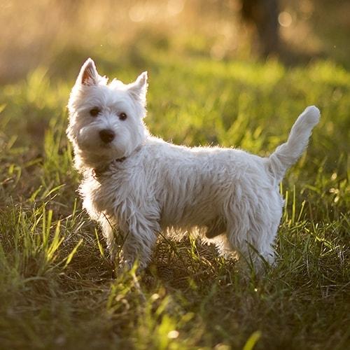 性格比较倔强的梗犬,在这几只白色小狗里属于运动量比较大的。它易患皮肤过敏,一旦患皮肤病非常顽固,反反复复,需要主人经常打理毛发。