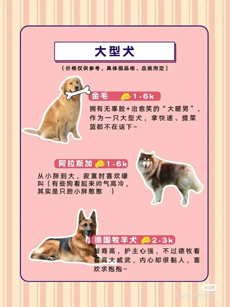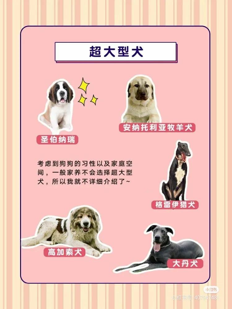 考虑到狗狗的习性以及家庭空间,一般家养不会选择超大型犬,所以我就不详细介绍了~