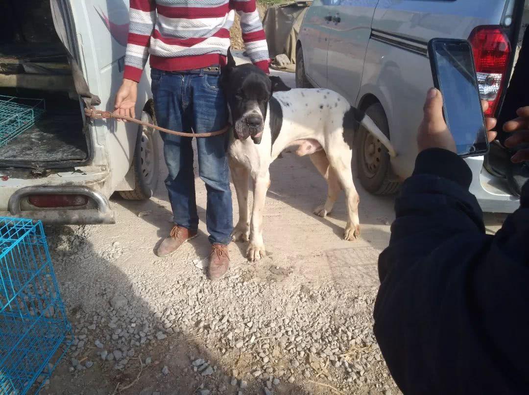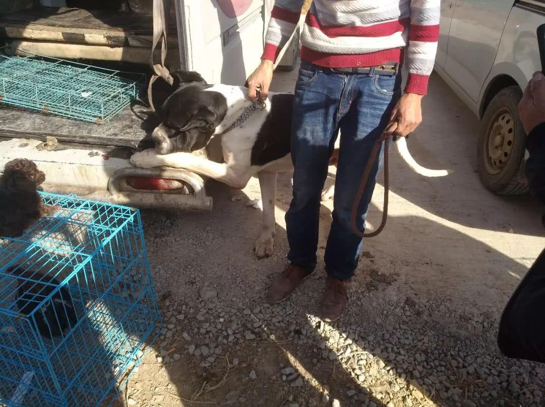 图中的商贩正在推销自己待售的大丹犬,这种狗狗其实早年间用作护卫犬和猎犬的情况比较多,并不是单纯的当成宠物饲养。商贩的报价也是着实不便宜,有不少买主开出了800元不等的价格,商贩却始终不肯松口,坚持要价1000元!少了1000不用谈!