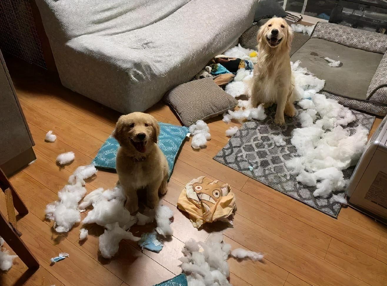 当你不在家的时候,它们会乱撕乱咬,然后当你回到家看到一篇狼藉,它对着你笑摇摇尾巴,你都不敢相信这真的是它做的!