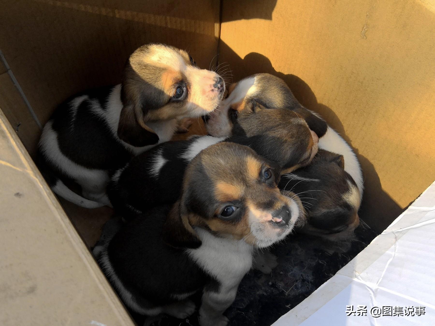 这种狗不太常见,摊主说这是比格犬。比格犬又叫做米格鲁猎兔犬,是世界名犬之一。身形很结实,脑袋大而且圆,一对垂着的大耳朵。由于它精力过于旺盛,喜欢叫唤,所以没有大范围被喂养。