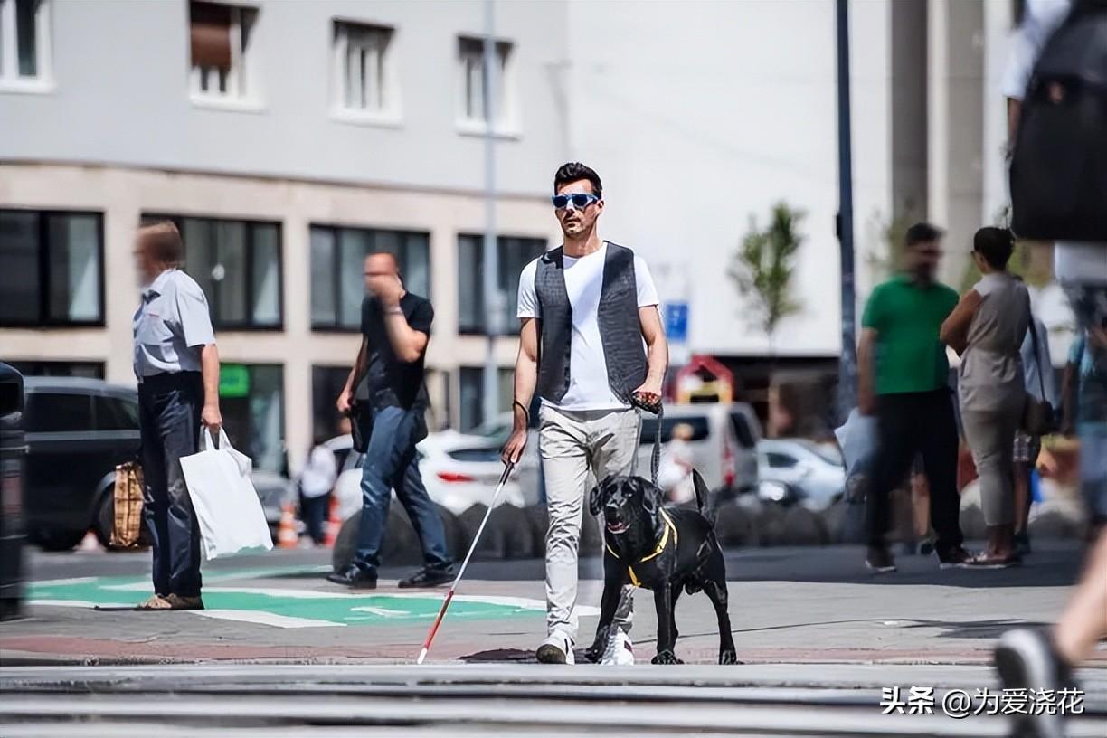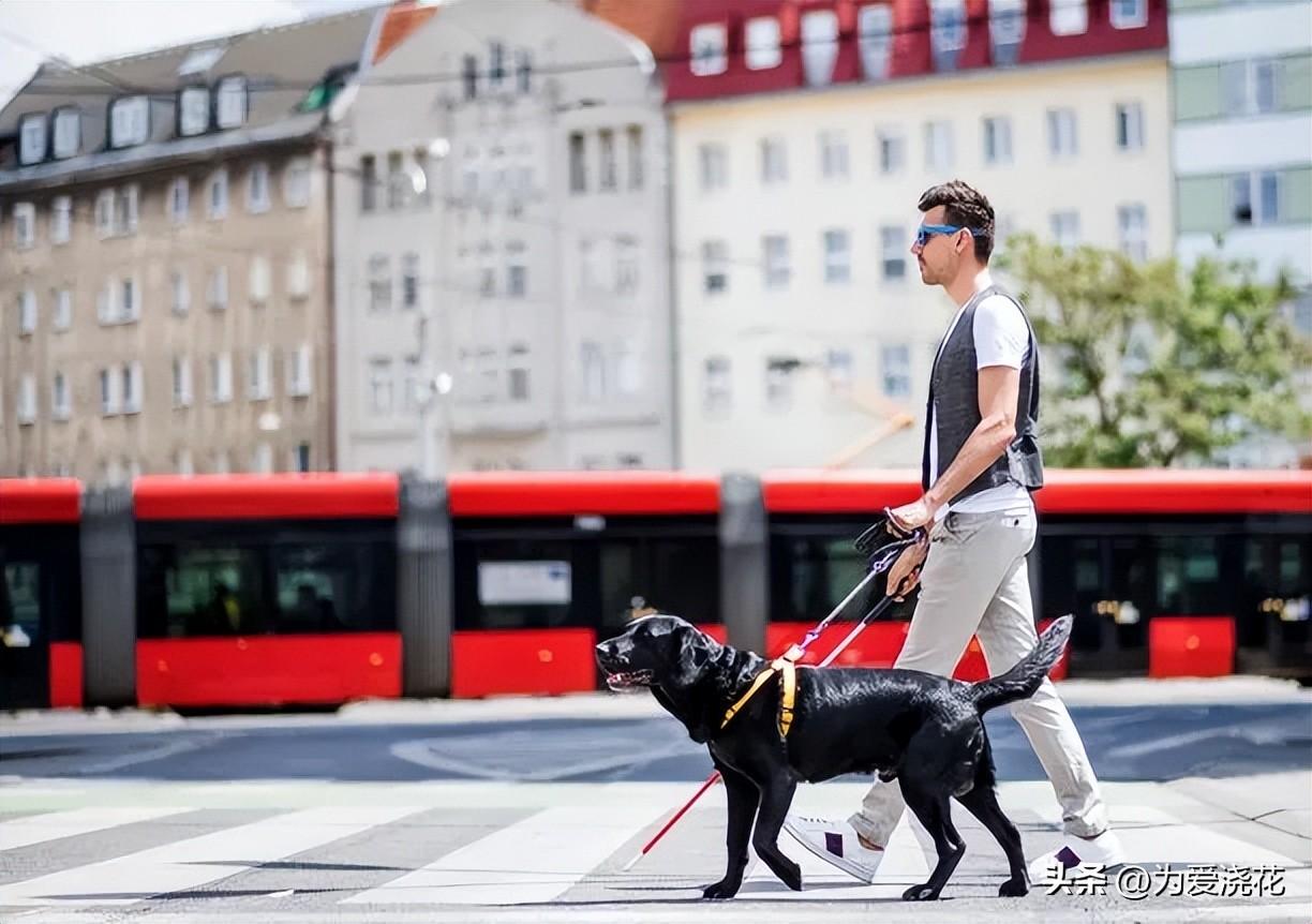 3、视障人士携导盲犬进站时,自身和导盲犬都要接受安全检查。进入车站、列车前,应为导盲犬系上牵引链,佩戴导盲鞍。