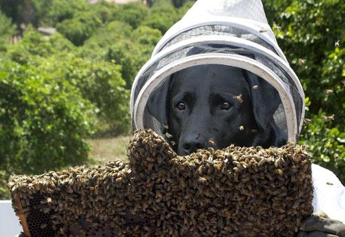 3. 给狗狗穿上一套防蜂服,让它去帮你摘蜂窝。这方法既能满足狗狗追逐蜜蜂的欲望,也可以让主人收获到野生的蜂蜜。