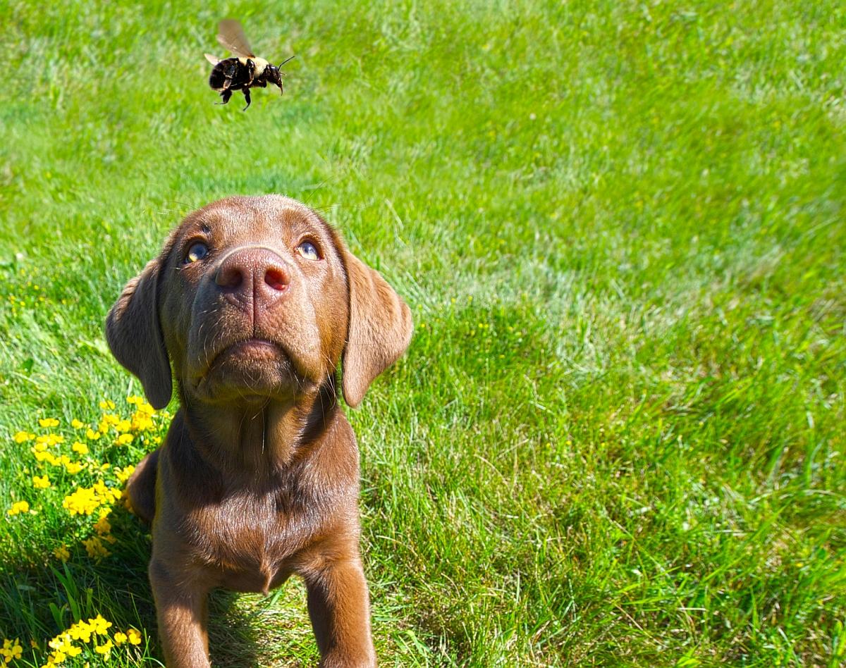1. 带狗狗远离花朵密布或者是有蜜蜂出没的地方。