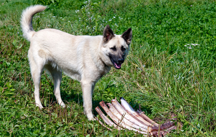 通常情况下,狗狗能够吃猪、牛、羊的腿部的骨头和其他部位不容易碎的大骨头,这类骨头比较僵硬,能够帮助狗狗磨牙,还能提高狗狗的食欲。
