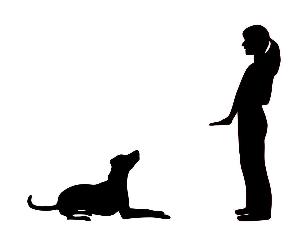 趴下——“趴”——手心向下压。先让它坐下,给它下达口令时,用另一只手拍拍它前面的地板,如果没有趴下,可以轻轻按压它的肩膀,就以一手压肩强制它趴下,并在趴下后压肩的手不放,一定要记得鼓励哦。