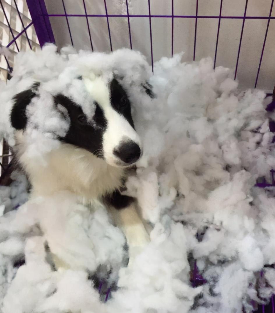 如果说盲目拆家是可怕的,小编认为有目的性,智慧拆家更可怕。边牧就是属于这样,它们很聪明,会聪明拆家,吃完之后还会掩饰自己的罪行或者是嫁祸给别的狗。