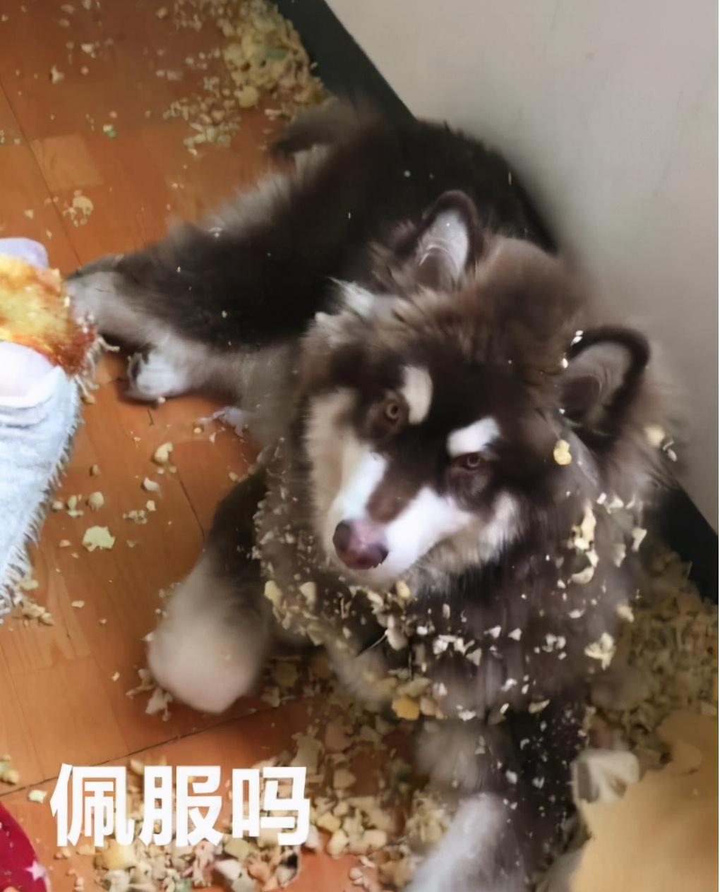 阿拉斯加雪橇犬可以说是加大版的哈士奇,它们的体型比哈士奇大,毛发也比哈士奇长,拆家起来也是不容小觑的,外号“阿拉撕家”,阿拉斯加是典型的家具杀手,作案对象不局限于拖鞋、卫生纸,沙发橱柜都在它的作案范围之内。
