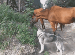 (3)二哈:主人,原来草是香的呀,你也快来尝尝。