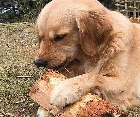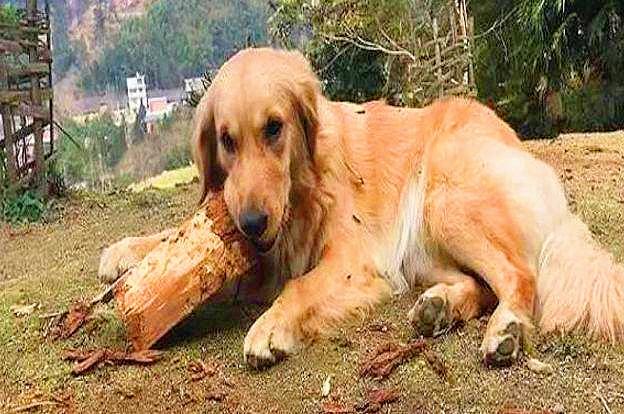 刚来到农村时,爸妈说狗狗天天都不太开心,郁郁寡欢的样子,经常会躲在屋子后面独自啃树皮,主人知道后也很心疼它。