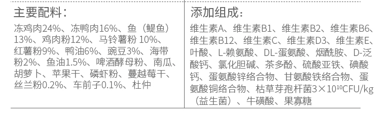 一般狗粮的原材料是按照顺序排列的,因此狗粮前三位最好是肉,而且要注明是什么狗,最好还是公开了原料占比。