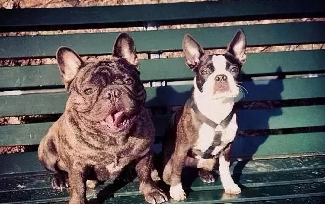 左侧是法国斗牛犬右侧是波士顿梗犬