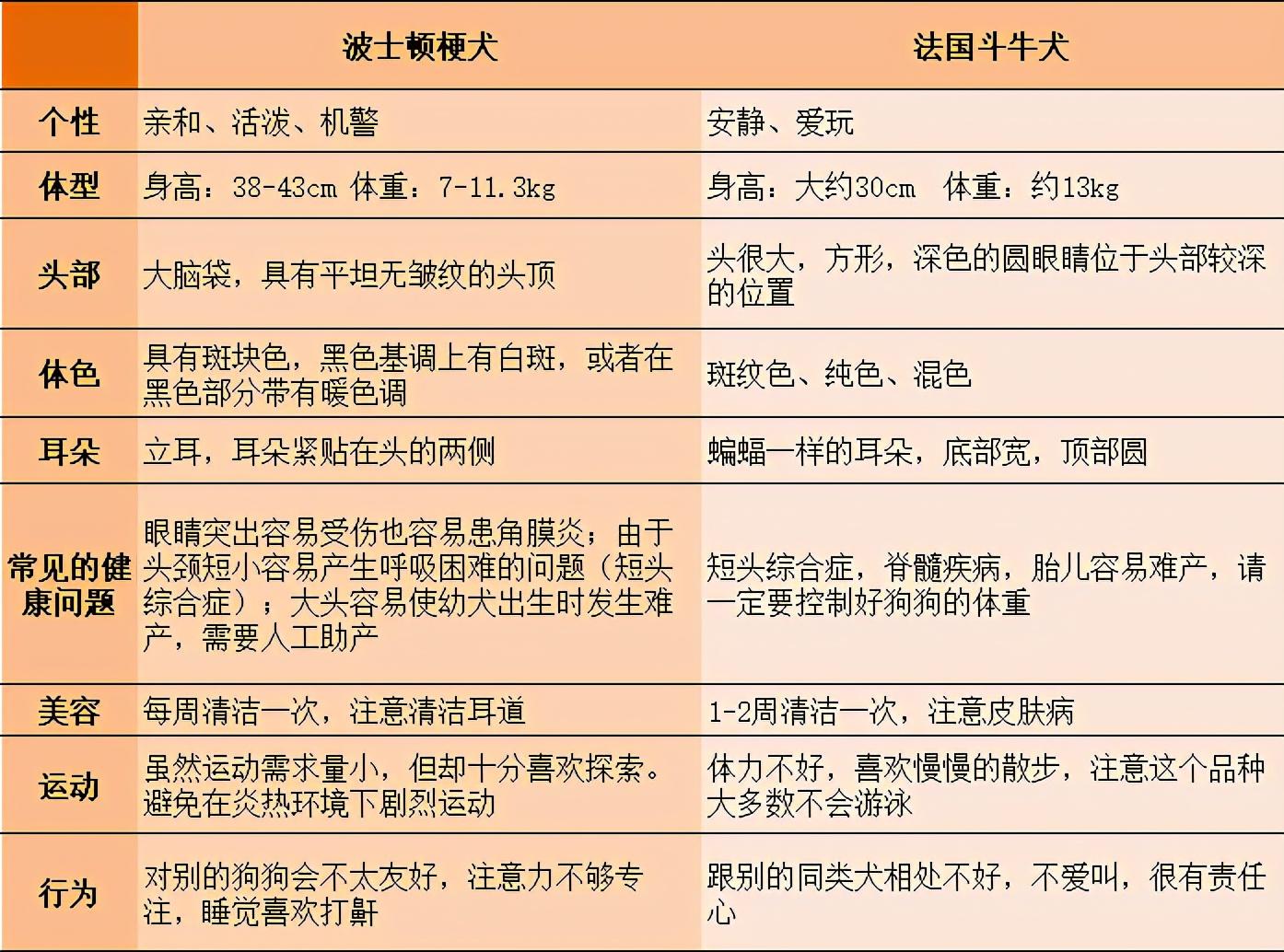 时间: 2023-12-05 12:01:01大家好,我是盾盾妈妈,一个养宠十三年的金毛犬妈妈,今天想跟大家聊一聊两种丑萌丑萌的犬种,波士顿犬和法国斗牛犬,日常生活中大家总会把它们弄混淆!我来发一张对比图给大家看看吧!大头宝宝是法国斗牛犬,长腿宝宝是波士顿梗犬。