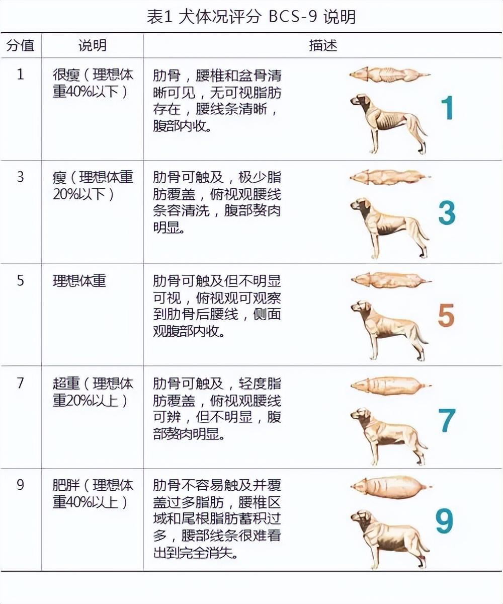 按照下表体重图所打分的话,你家狗狗又处在一个怎样的分值呢?