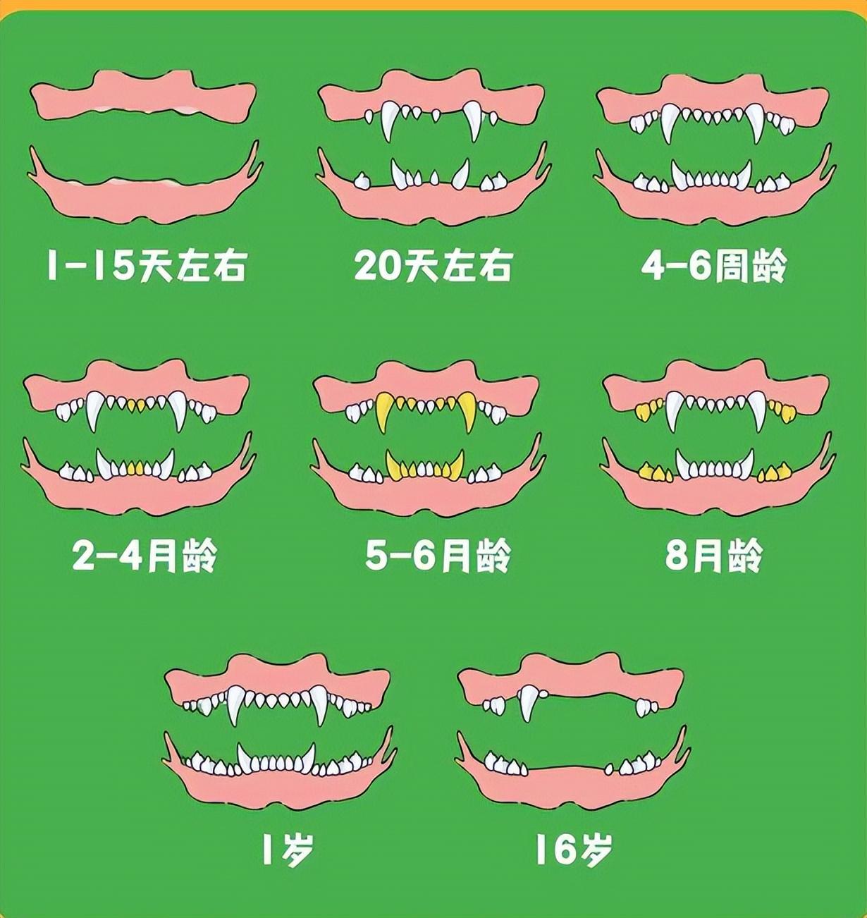 2-4月龄,幼犬就会经历第一次换牙,主要以乳门齿为主。