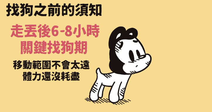 发现狗狗失踪后立刻去附近的派出所社区摄影机。调阅监视器可以看得去有没有狗狗的踪迹,也可以知道它的动态与方向,让找狗狗的行动至少有大方向,至少知道狗狗在东边而不在西边。才能把握时间最快的找到。