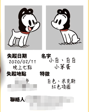 成立粉丝专业的目的市场整个找狗行动有个网络上的核心资讯中心。利用你家小白不见就可以成立一个。请帮我找小白粉丝专业好处是不管几个,一起找的亲朋好友可以在专业上面随时更新,每个人找他或是到处问到的最新动态。