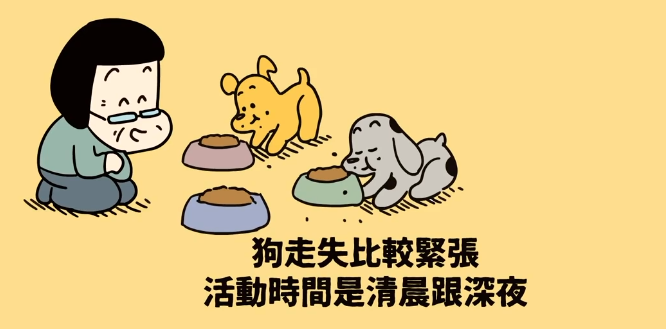 而越亲人的狗狗,越不会自己求生,越容易被人拦住。平常常去热闹的地方社会化好的狗狗可能会因为想吃东西,然后往人群多的地方或具有食物的饭馆。流浪到公园跟着狗群走的通常是被放羊的狗狗,或是小时候跟狗群一起长大的狗狗。因为车祸,鞭炮被惊吓,走私的狗狗在惊吓后的逃命距离可能会冲很远。至少一公里起跳。如果在逃命中又遇到其他惊吓,他又找不到地方躲。可能冷静下来之后这几个小时之后的事情了,所以居然是在家附近走丢的也不见得会留在家附近了。