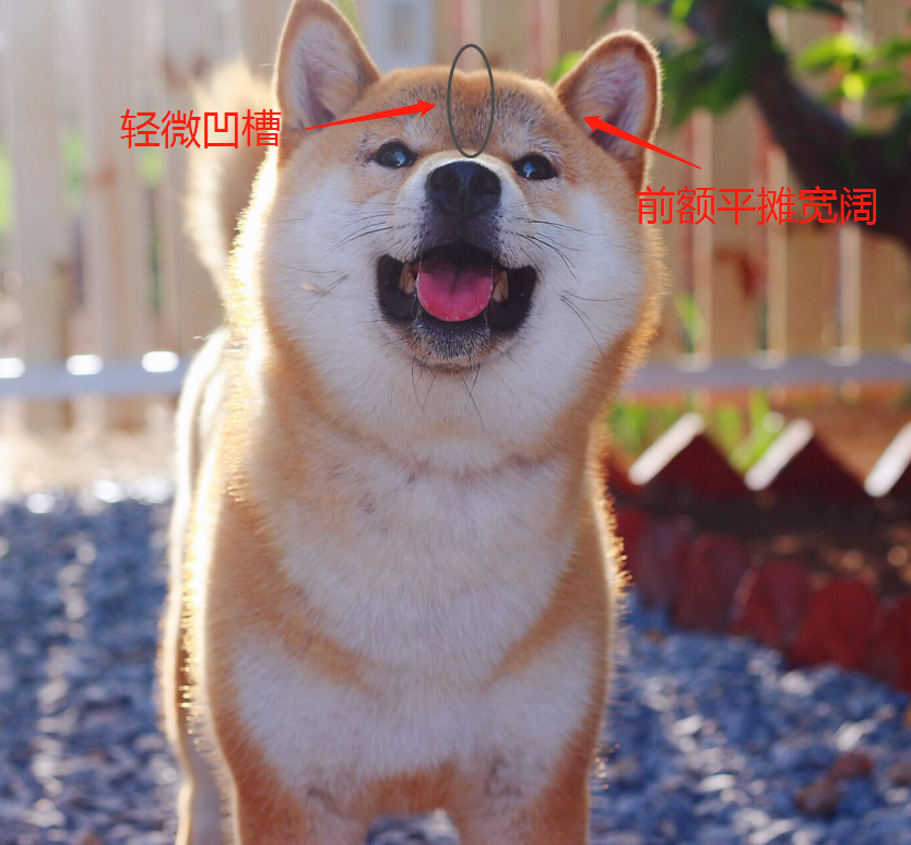 纯种柴犬的头部前额是平坦宽阔的,头部中间有轻微凹槽,但是头部整体比较圆,面颊很饱满,看上去很可爱。