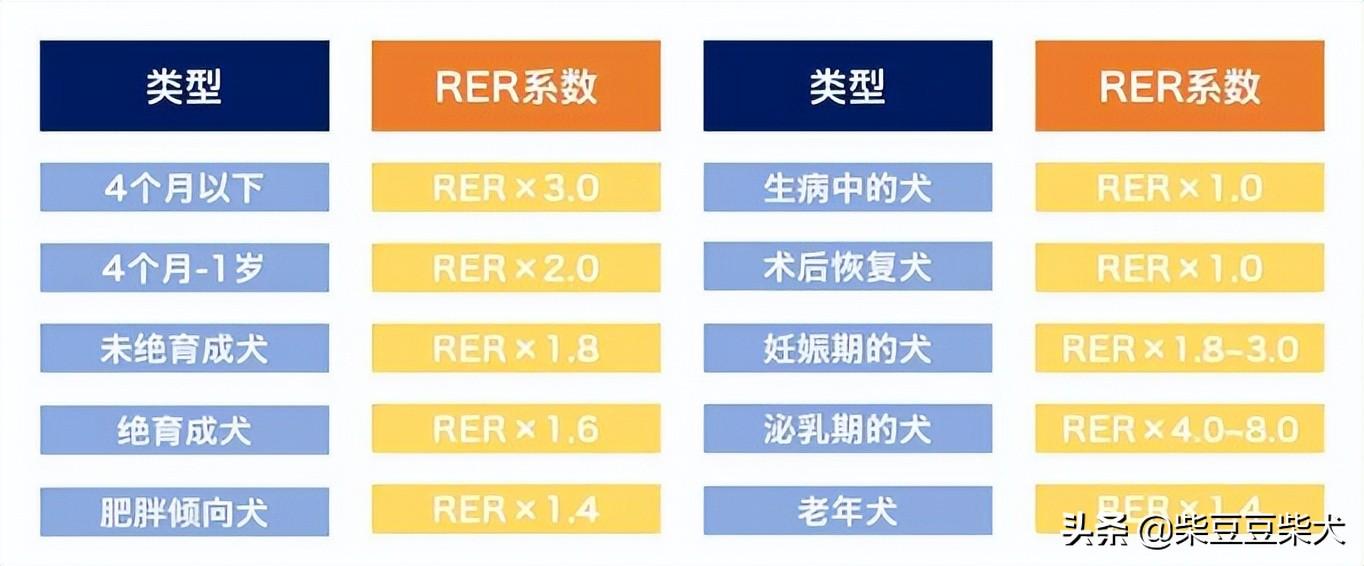 以RER为基数,再乘以爱犬的不同生活阶段的系数,就可以得出狗一天需要的准确的卡路里。