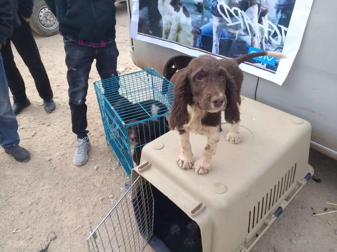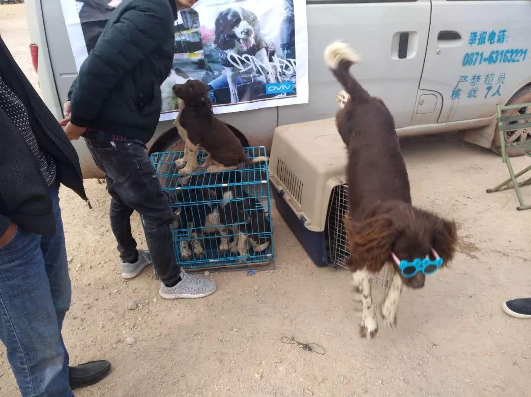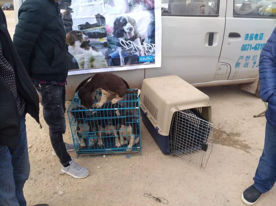 图中的商贩正在狗市入口附近展示自己培育的史宾格犬,可以看到,商贩为了宣传效果更好,还专门在车上张贴了宣传海报,并且到场后,还让一只乖巧可爱的成犬给众人带来了一番训练成果展示。没过多久,商贩的车子前便已经站满了围观者,看得出来,商贩的宣传效果还是非常不错的。