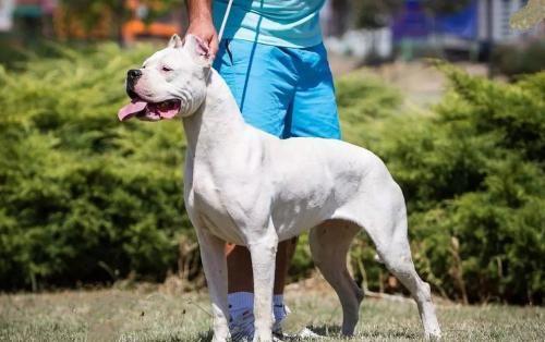 3、阿根廷杜高犬:阿根廷杜高犬不要看体型不大,但是性格是非常可怕的,肌肉也很发达,它能够猎杀比自己体型大好几倍的动物,比如野猪、山地狮等等,能够一口咬住他们的脖子,然后疯狂的撕咬。