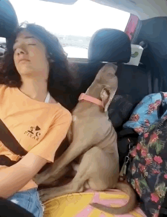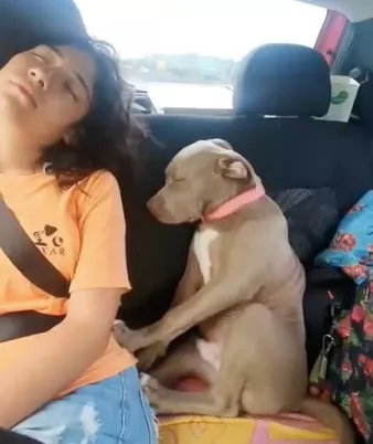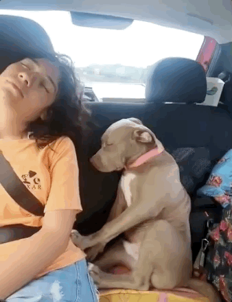 前不久,米国有只恶霸犬“Nino”和铲屎官一起出去游玩,因为玩得太累,一人一狗在回程车上睡的不省人(gou)事。