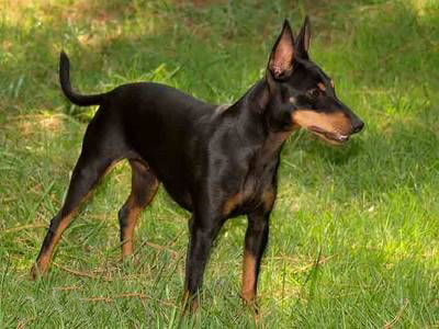 曼彻斯特梗继承了已经绝种的黑褐梗的血统,18世纪时,在曼彻斯特由一个名叫约翰修姆的饲养者改良出曼彻斯特梗,使用惠比特犬与其杂交产生出来曼彻斯特品种,后来又混入西部高地梗的血统,形成了现在的品系。曼彻斯特梗是靠视觉狩猎,该犬是用来猎兔捕鼠两个目的而产生的犬种。此犬勇气十足,动作敏捷,经过长时间的配种,保留了特有的活泼,机敏,快速的本质,改良了原本粗野急躁的性格。它是捕鼠能手,在19世纪末十分流行的捕鼠比赛中,曾经有一只名叫贝利的狗在六分钟多一点的时间里就杀死了100只老鼠。