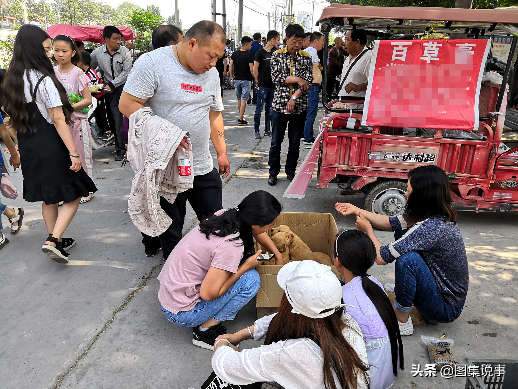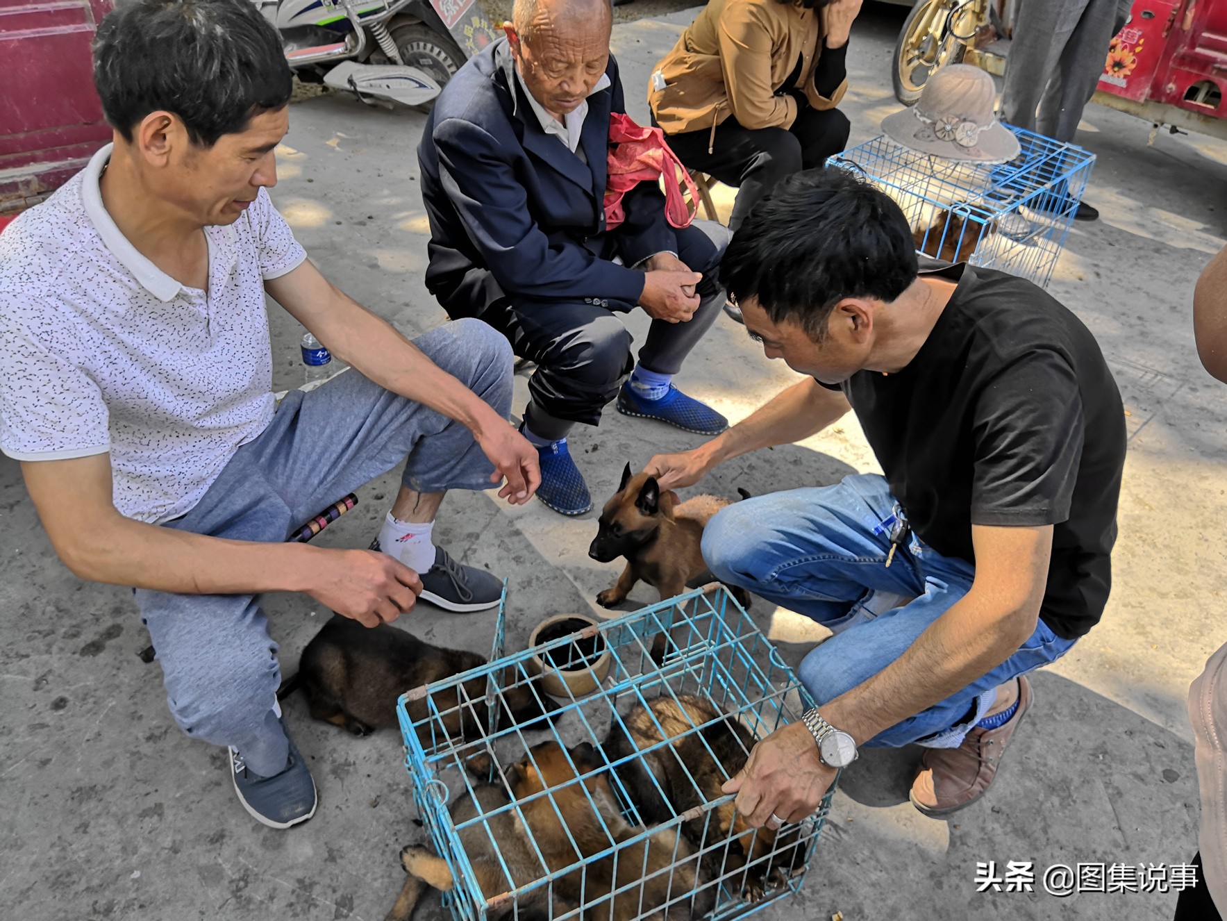 八哥犬,两只巴哥幼犬被一个人买走,300元一只。后边哪个应该是金毛跟别的品种的狗杂交的,样子有点怪怪的。以上图片均由《图集说事》原创拍摄,看见乡土,记住乡愁,欢迎关注和留言。