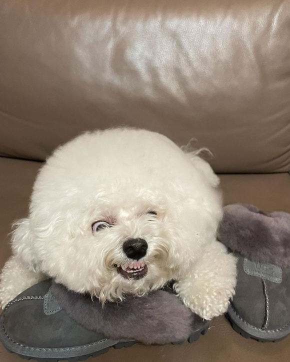 来自韩国的这只比熊犬简直就是行走的表情包。比熊犬可爱的地方就在于,对于成年人来说有如玩偶的大小,颜色常见的有黑、白,不过受欢迎也最常看到的一定是白色的比熊,这只白色小公主,就是相当正统的比熊~