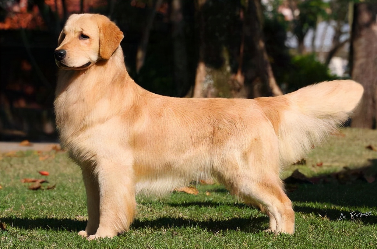 纯种金毛在站立不动的时候,尾巴应该是夹在屁股后面或者适度下垂的,尾巴的毛发又顺又长,这样的狗狗才是品相最好的。如果尾巴卷卷的、或者向上翘的话,就不是纯种狗了。