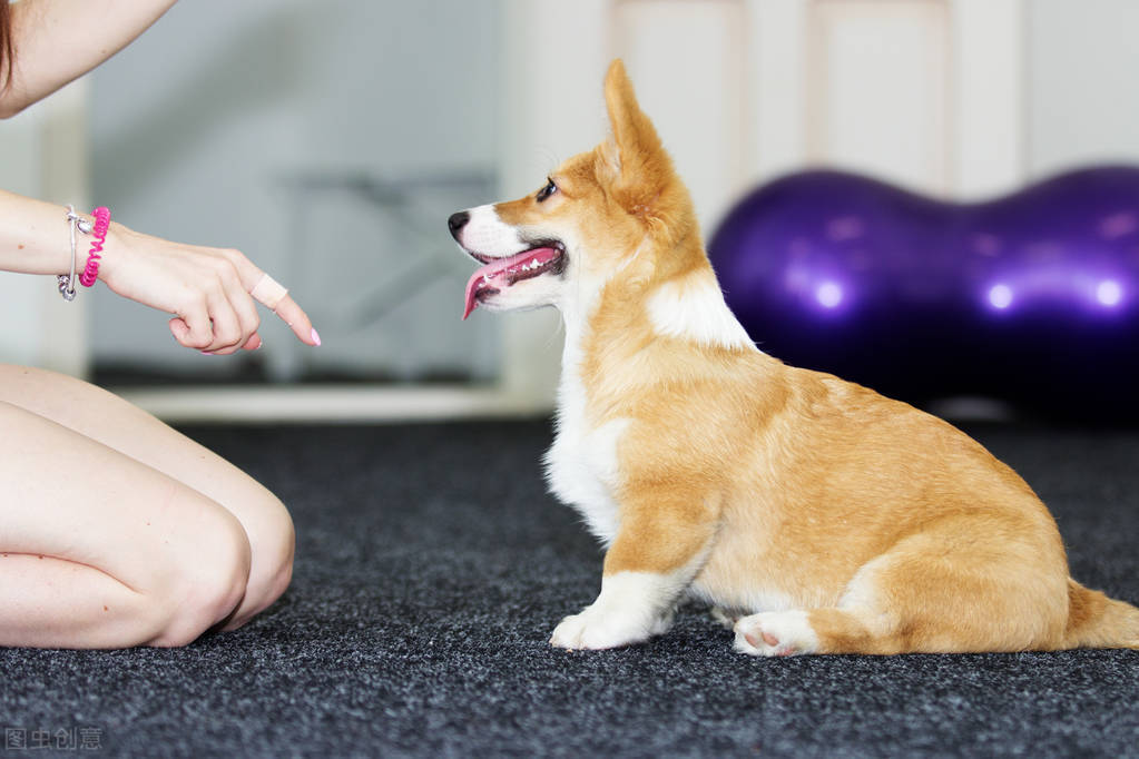 将手离开一定距离后,等狗狗主动触碰,然后我们将拿球的手逐渐降低