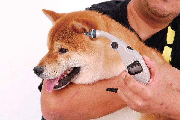 先用棉球蘸些洗耳液来清洁狗狗的外耳道,待可见的污渍全部被擦除,耳内毛发也比较服帖时,就可以把耳温枪的测量部分垂直伸入狗狗的水平耳道了。这种测量的方式最好能有人帮忙,不能让狗狗乱动,否则可能不慎插入太深,损伤到狗狗的耳膜。