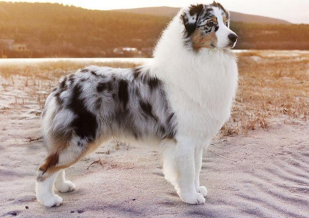 澳洲牧羊犬具有很强的畜牧和护卫能力,肌肉发达但不笨重,而且毛色非常多且漂亮,性格跟金毛、拉布拉多相似,最重要的是很容易训练,简直是高颜值高智商的代表。