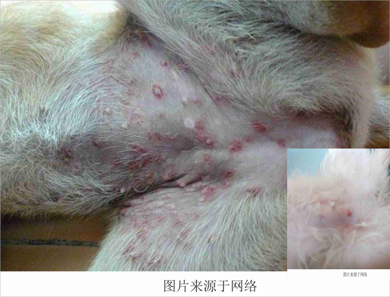1:跳蚤感染,常用配戴犬驱虱圈,这种方法简单牢靠,药效可持续3~4个月;