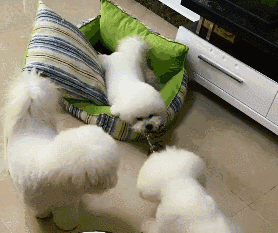 比熊犬一身白色毛发容易脏,家里要保持整洁干净,带出门也要注意点。每次遛狗回到家之后,建议主人给它用毛巾擦拭一下身体。