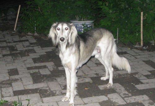 品相:蒙古细犬身体成长方形,腹腔宽大,腰部十分流畅但并不纤细。腹部皮肤松弛,背微弓,身体结构非常适合高速奔跑,外观给人以强壮流畅的运动感。公犬头大而方,咬肌发达,母犬头部相对圆润些。分垂耳、折耳两种,以垂耳为佳。眼为暗褐色,略小,有一种天生的威慑力。鼻为黑、红,四肢粗壮、高大,胫骨上肌肉饱满,蹄瓣紧密结实。毛色以白、草黄两种颜色最为常见,黑、青灰或虎皮为稀有毛色。毛质硬而厚密,冬季针毛下面遍布厚实的绒毛, 皮肤粗糙而结实,抗撕咬能力强。尾巴细长而下垂略弯曲,过后腿膝关节。兴奋时可举尾过背,但绝不会卷曲成圈。