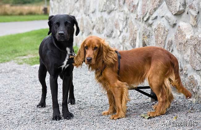 1)体型。英国可卡犬和美国可卡犬站在一起,猛地一看,英国可卡犬会更高一些,根据国际标准,两种犬肩高的差距应该是3.8cm。英国可卡犬比较简洁朴实,美国可卡犬比较华丽夸张,英国可卡犬体型稍大,但并不蠢笨,强健而不粗糙,美国可卡犬体型小,但并不柔弱,外形高雅而华丽。