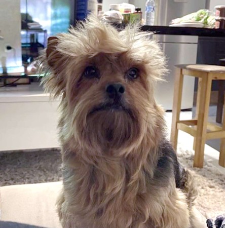 国外就有一名铲屎官,她自认为修剪发型是件很简单的事情,可无人给她当模特,于是她便将目标转移到家里饲养的约克夏身上。她认为人跟狗之间的发型差不多了多少,而且本身约克夏犬的毛发就相对比较长,可操作的空间更大。