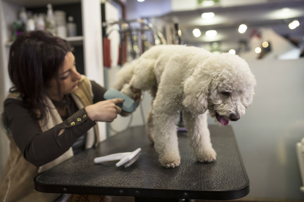 如果真自己搞不定,就直接带狗狗去美容吧。让美容师给狗狗的毛发开结,如果毛发真的打结得很严重,美容师会建议全部都剃掉,不然狗狗毛发过长,很快又会打结。有些狗狗比较敏感,会对剪掉毛或美容后的样子感到难堪,试着鼓励它给它零食吃,让它适应自己的新造型。帮狗狗开结完成后,最好顺便让狗狗去洗个澡,用一些顺滑毛发的美毛产品,让狗狗的毛发不会太容易打结。