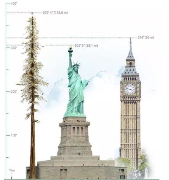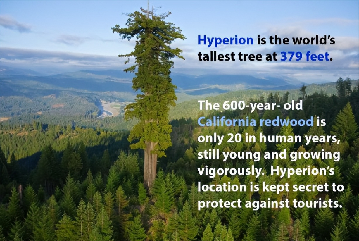 科学家估计“亥伯龙神”的年龄在600至800岁之间,也就是说最晚在明代建立初期,这棵树就已经生长在地球上啦。从一棵小树苗变成地球上最高的树,“亥伯龙神”见证了地球的变迁,也见证了人类的历史。