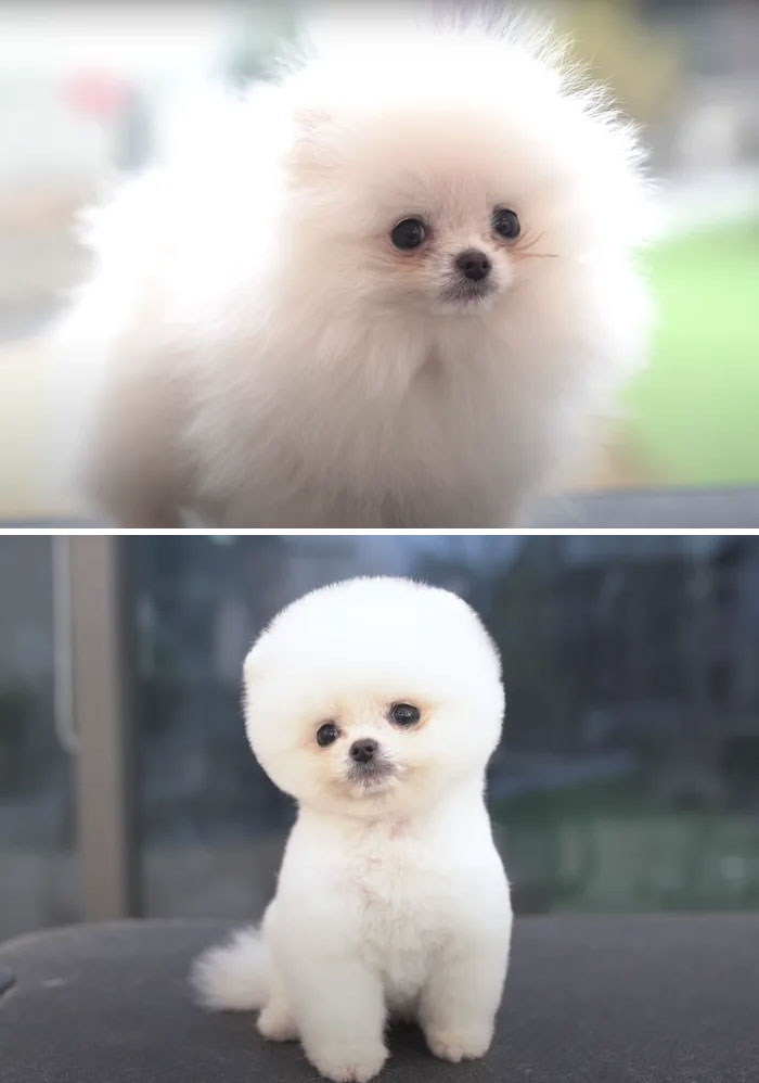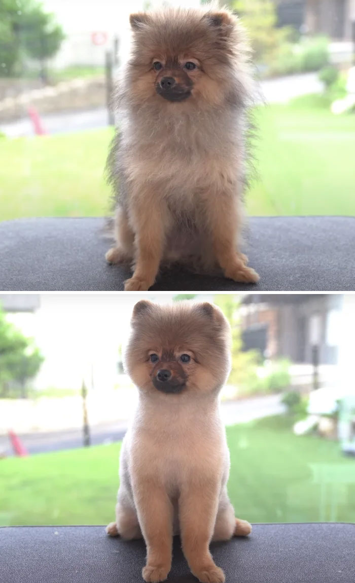 图为美容前后的狗狗,有没有感觉从随意丢弃的布娃娃变的活起来的动物。