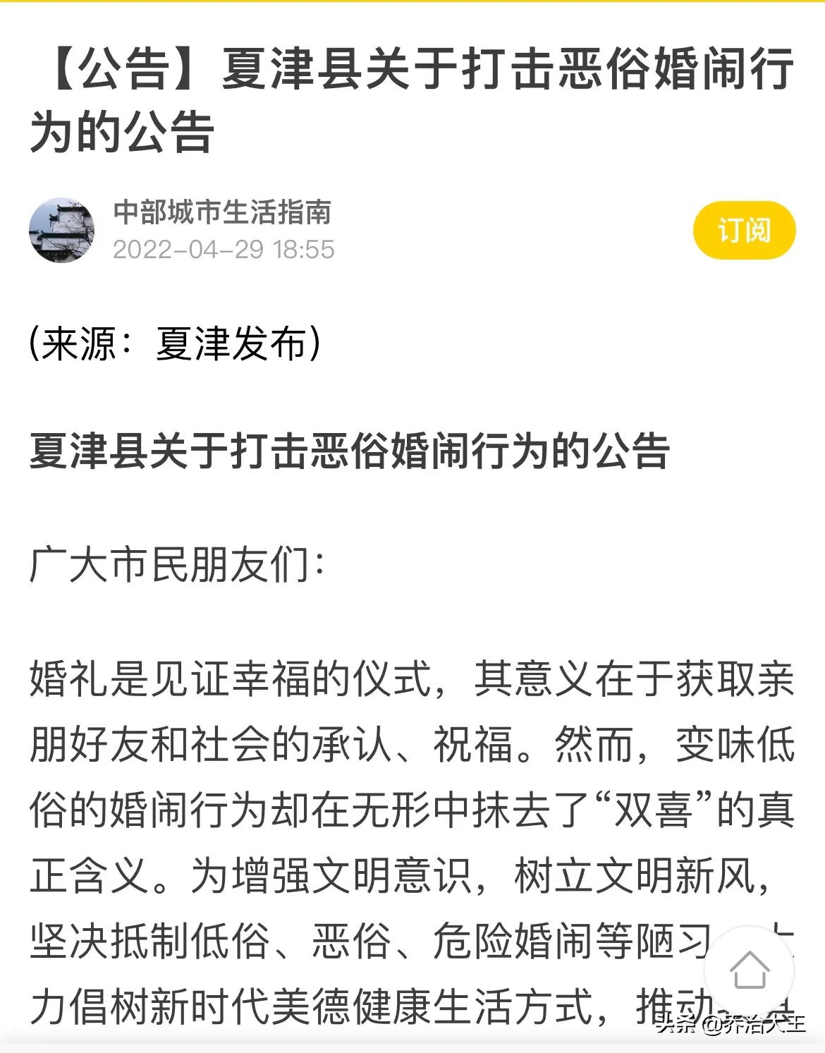 此前,很多地方尤其是恶俗闹婚的高发区都出台了相应的政策,明令禁止恶俗婚闹,如果发现,轻则罚款教育,重则触犯法律。